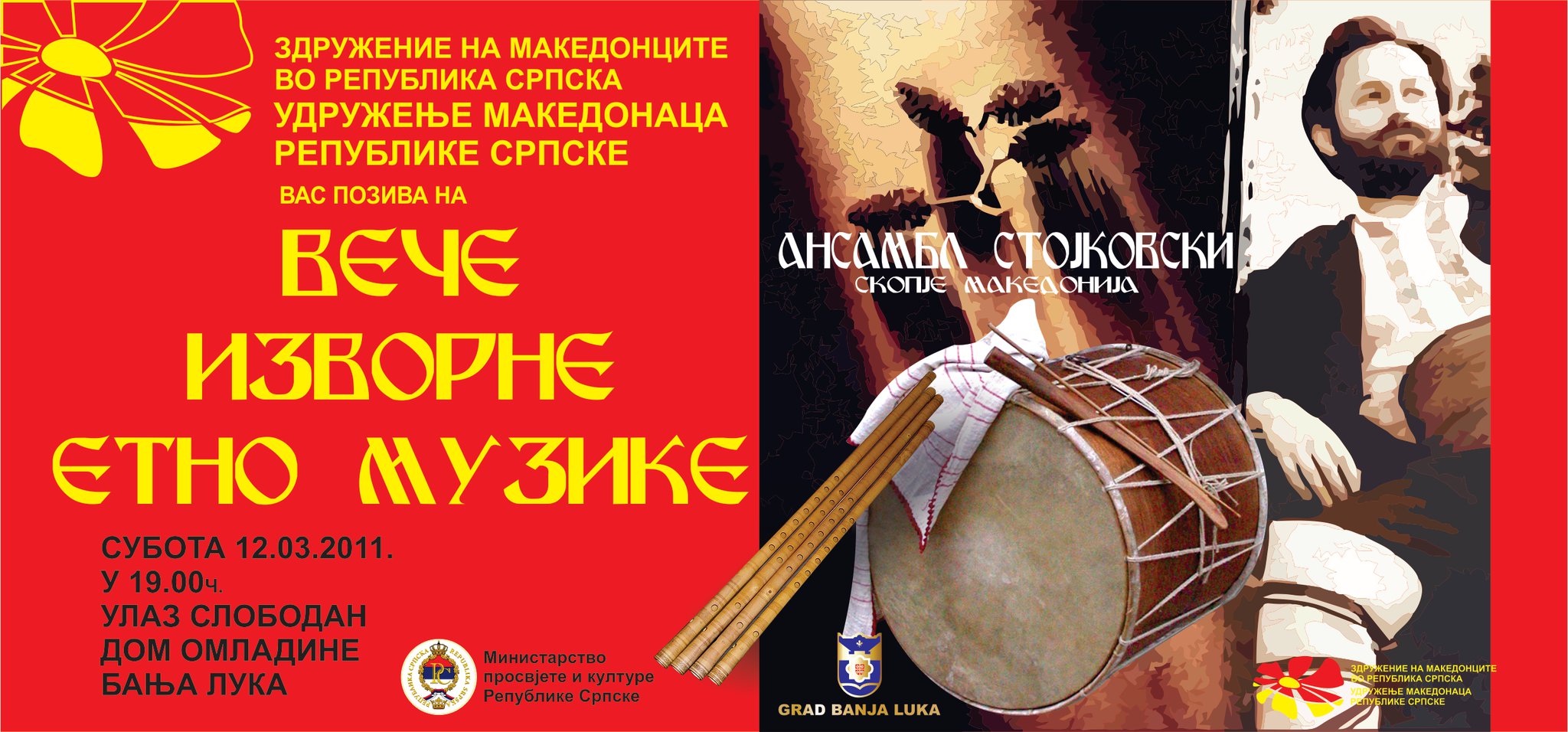 Ansambl “Stojkovski” iz Skoplja održao je 12. marta, u banjalučkom Domu omladine, koncert koji je okupio veliki broj ljubitelja makedonske izvorne i etno muzike.