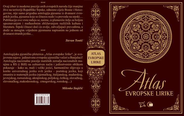 I pored prisutnih teškoća, knjiga, to najveće čovekovo bogatstvo, se ne predaje niti posustaje, istražuje, beleži, svedoči, pamti i traje. Takvo uverenje potvrđuje više od pedeset savremenih pesnika dvanaest evropskih naroda na dvanaest jezika uvršteni u antologiju Atlas evropske lirike, literalnu celinu sastavljenu od delova, osobeno jedinstvo razlika i srodnosti. Izabrani autori su predstavnici matičnih zemalja nacionalnih manjina koje žive u Bosni i Hercegovini. Njihovo pesništvo nije u svemu vezano za tekuće vreme i zavičajne prostore. Najčešće je to uopšteno i bezvremeno pevanje, jedna ontološka svest i pogled na svet, emotivno i refl eksivno višeglasje, realističko i moderno, subjektivna i „objektivna“ lirika, slobodnog i vezanog stiha. Ponekad se u njoj lirsko iskazuje kao epsko, dramsko i esejističko. Ima pesama koje su mogle biti napisane kao pripovesti ili monološke drame. Udeo kreativne svesti stalno je prisutan i presudan. Poetika znakova i značenja sjedinila se sa psihologijom pevanja i mišljenja, određuje poziciju tvorca poezije i poziciju čitaoca. Vidljivo je kako pesnici razmišljaju o stvaranju i stvorenom. Avangardno ikustvo otuđenja u čoveku i van njega ugrađeno je u njihove temeljne misli. Kao da su izabrani autori antologije zajedno pisali jednu pesmu u više nastavaka i varijanata o slobodama i neslobodama, smislu i besmislu življenja i opstajanja, lepom i ružnom, bolnoj istini u kojoj ima sve manje vedrine i topline. U esejističkim sadržajima pesama analitički i kritički utvrđuju se mere vrednosti i vrednosti mere. Pesma mora da bude otporna na prigovore, da dobija i kad gubi. Tuga iz nje ne sme izneveriti i nestati. Uvek iza tumačenja ostaje nepročitan jezik značenja, mogućnost drukčijeg čitanja i drukčijeg razumevanja. Pored uočenih srodnosti vidljive su i razlike. Svaka pesnička pojava pesnička je na svoj način i u svojoj estetskoj meri, najviše je sama sebi slična iako se može porediti. Svoj je uzrok i posledica, učitelj i učenik, opesmotvorenje sa „stotinu cvetova“, kako je u pesmi Balada o suncokretu zapisao Ivan Drač, ukrajinski poeta. Iako je u njoj sve izmešano, svoje i tuđe, razum progresa i tuga praiskonska, u emotivnim mislima stihova čitaoci lako mogu da prepoznaju svoje vreme i sebe.