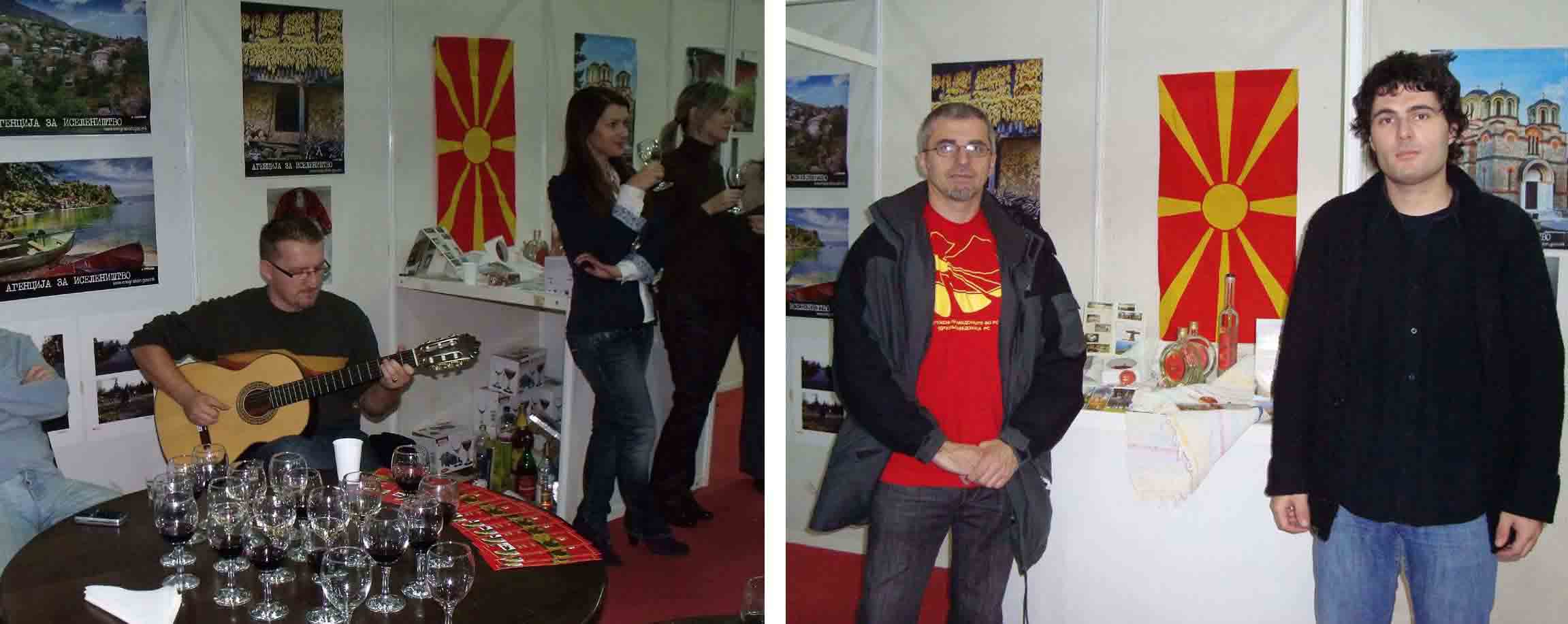 Posjetioci sajma su na štandu Udruženja Makedonaca imali priliku da, uz zvuke makedonske muzike, uživaju u degustaciji kvalitetnih makedonskih vina, vide brojne rukotvorine, umjetničke fotografije i video materijale sa muzičkim i filmskim sadržajem.