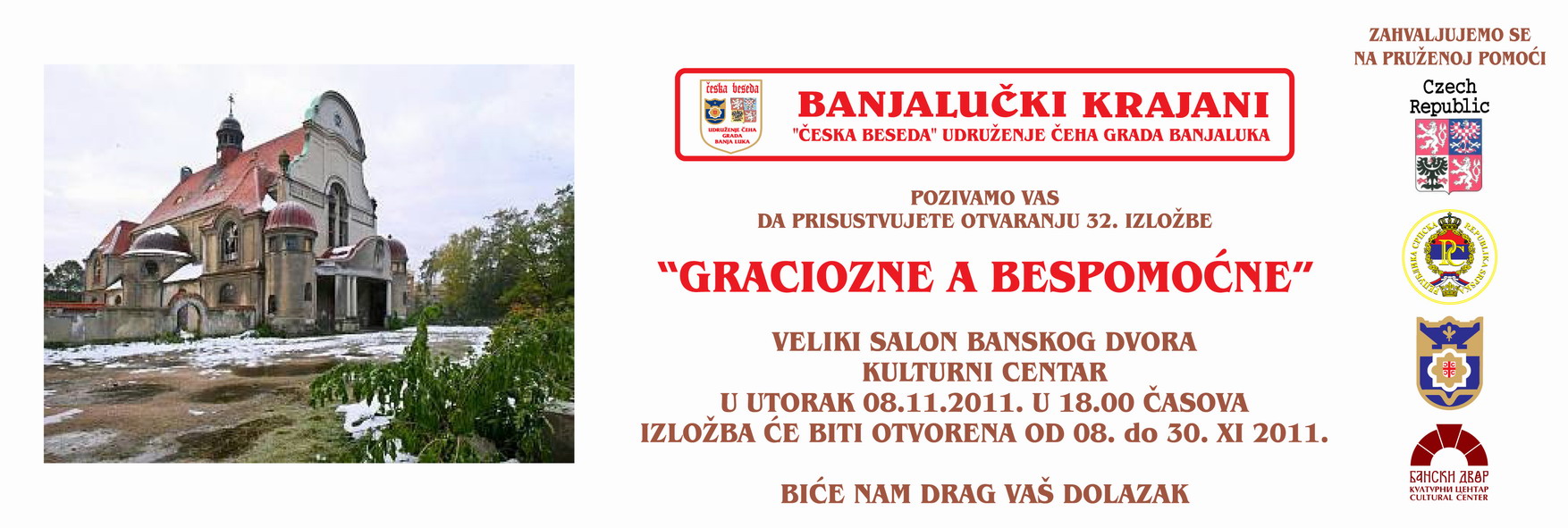 Izložba "Graciozne a bespomoćne" tematski prikazuje 38 fotografija interesantih arhitektonskih zdanja i spomenika u Češkoj republici, izgrađenih u vrijeme 19. i 20.vijeka, a koji su, na žalost, jako oštećeni i devastirani. Izložba želi upozoriti na neprocjenjivu vrijednost takvih zdanja i na taj način doprinijeti njihovoj obnovi. Izložba je bila do sada uspješno postaljena širom svijeta: Beč, Njujork, Dablin, Budimpešta, Štokholm, Rim, Tokio, Bratislava, Dresden, a i u većim gradovima Bosne i Hercegovine – Bihać, Tuzla, Zenica, Gračanica, Prijedor, Mostar, Sarajevo.