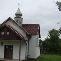 Crkva je krstoobrazne osnove, a na presjeku krakova krsta uzdiže se lukovičasta kupola na osmostranom tamburu. Iznad pravougaonog ulaza nalazi se jednostavna nadstrešnica završena dvoslivnim krovom, koju nose dva stuba kružnog presjeka. Prvobitno je nadstrešnica bila ravna, a iznad, na zabatu, bila cy dva polukružno završena prozorska otvora. Krovni pokrivač broda crkve i nadstrešnice je falcovani crijep, a kupole –pocinčani lim. Fasade su ravne, malterisane, uz potuno odsustvo dekoracije. Unutrašnji prostori, podužni i poprečni transept i oltarska apsida su zasvedeni poluobličastim svodom. Oltarski prostor je odvojen visokom, drvenom oltarskom pregradom jednostavne izrade. Istočno od crkve se nalazi jednostavni otvoreni zvonik, završen četvoroslivnim krovom, novije izrade.