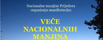 Povodom Osmog susreta pripadnika nacionalnih manjina Opštine Prijedor organizuje se svečani program pod nazivom „Veče nacionalnih manjina“ koji će se održati 12. oktobra 2012. godine u hotelu „Prijedor“ sa početkom u 19:30 časova.